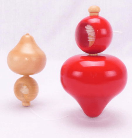 La toupie doit tourner. Dimensions : 5,6 cm x 9,8 cm. Poids : 60 grammes.