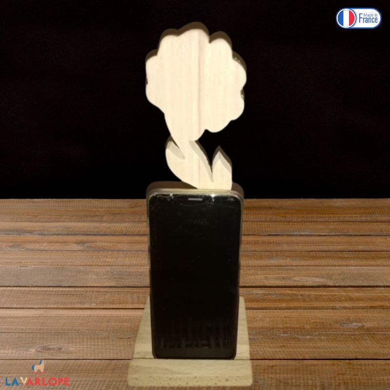 Le support de smartphone en bois de hêtre en forme de fleur est également un cadeau original pour toutes les occasions.