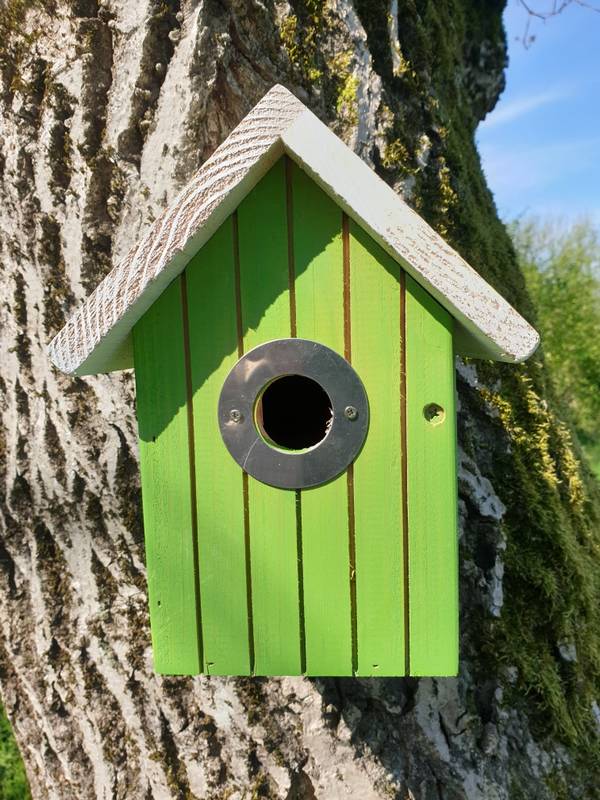 Le toit incurvé du nichoir cabane en fait un perchoir parfait pour n'importe quel oiseau, tandis que le trou de vol de 33 mm est juste la bonne taille pour les mésanges charbonnières, les mésanges huppées et les sittelles.