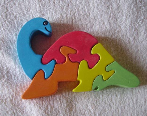 - Ce puzzle en bois sous forme de dinosaure permet aux enfants de jouer dans le calme et sous surveillance.