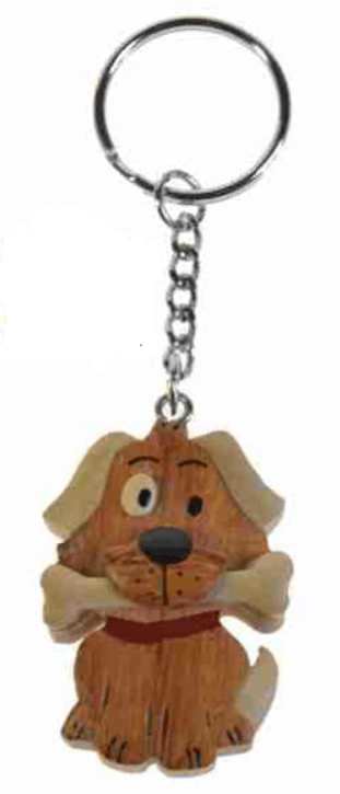 Ce porte-clés "chien et son os", en marqueterie, fabriqué de différentes sortes de bois, est un objet décoratif et utile pour ne pas perdre vos clés.