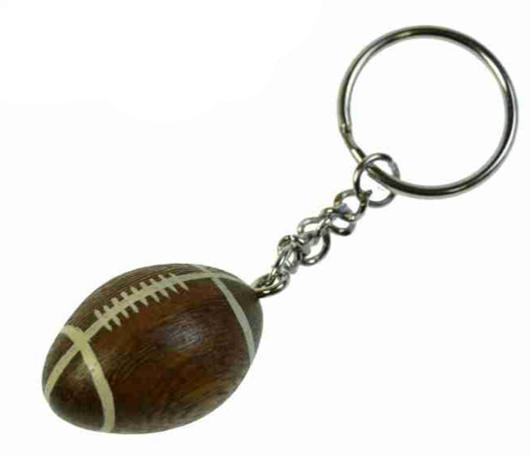 Ce porte clef "ballon de rugby", en marqueterie, fabriqué de différentes sortes de bois, est un objet décoratif et utile pour ne pas perdre vos clefs .