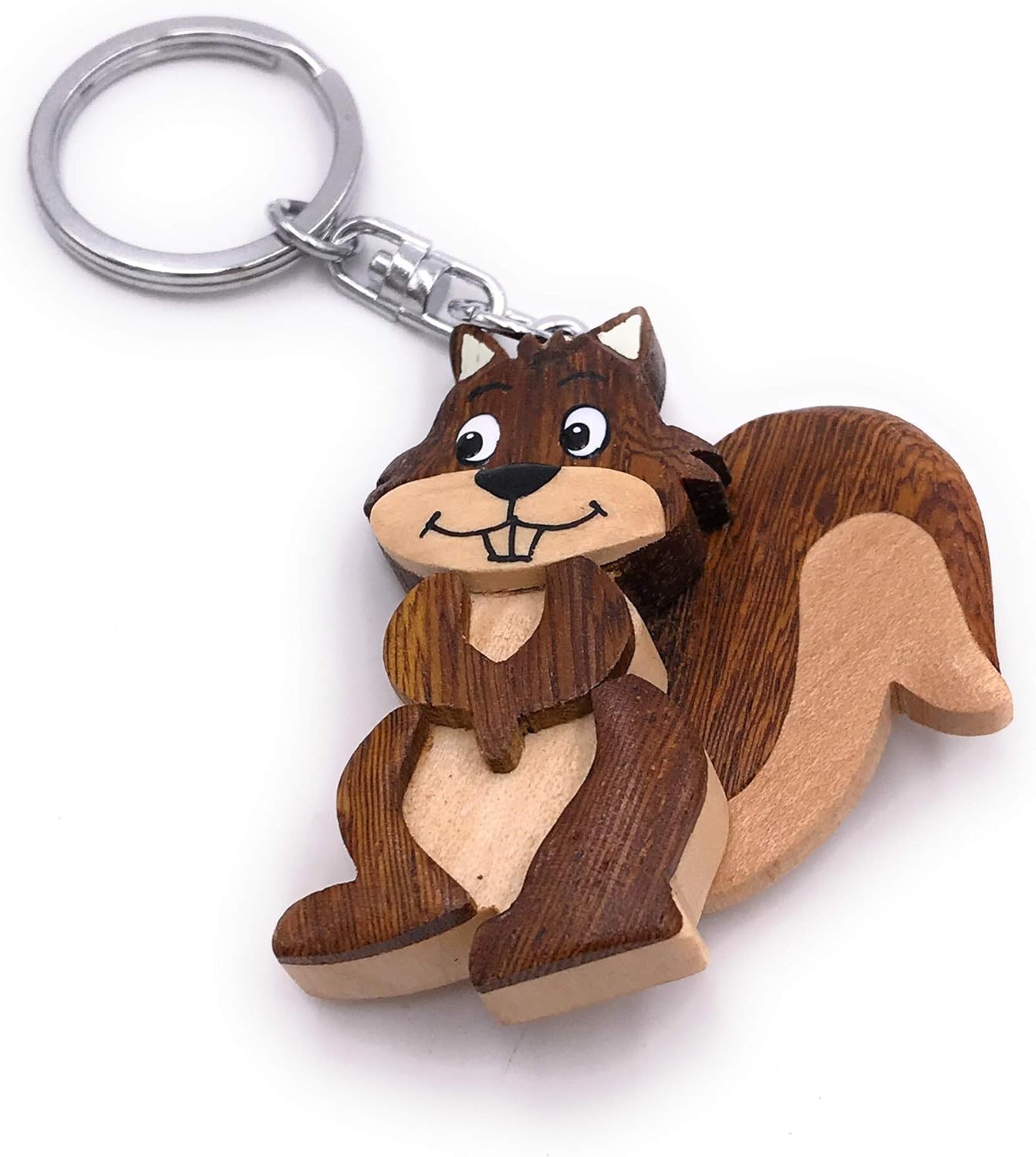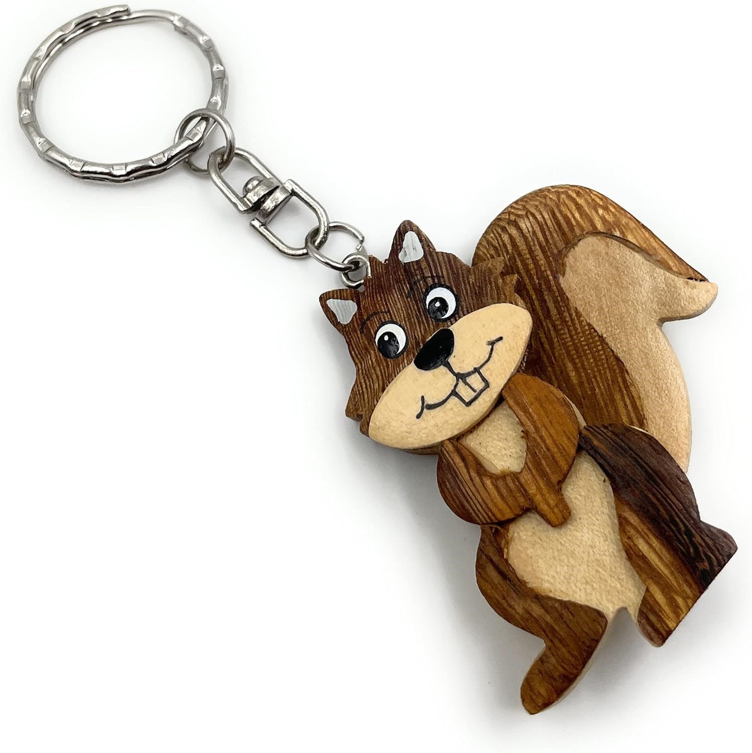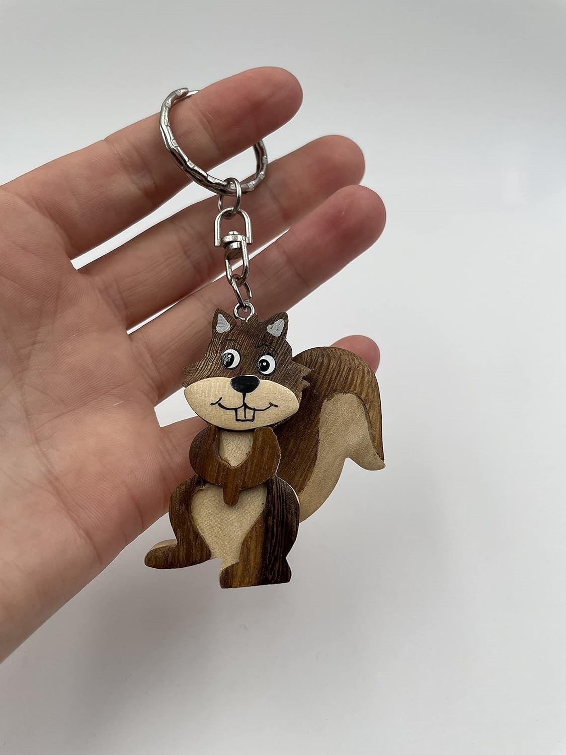 Ce porte-clés en marqueterie, fabriqué à la main avec différentes essences de bois nobles, est un véritable bijou artisanal. Sa forme d'écureuil finement détaillée et son design rustique en font un accessoire de mode à la fois charmant et authentique.