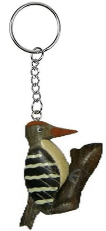 Ce porte-clés "pivert", en marqueterie, fabriqué de différentes sortes de bois, est un objet décoratif et utile pour ne pas perdre vos clés.