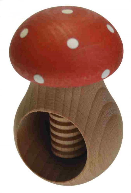 Ce casse-noix en bois en forme de champignon est idéal pour casser les noix, amandes et autres fruits secs. Fabriqué en bois de hêtre de France. Dimensions: 10 x 6 cm. Poids 120 g. Disponible avec tête noire ou rouge.